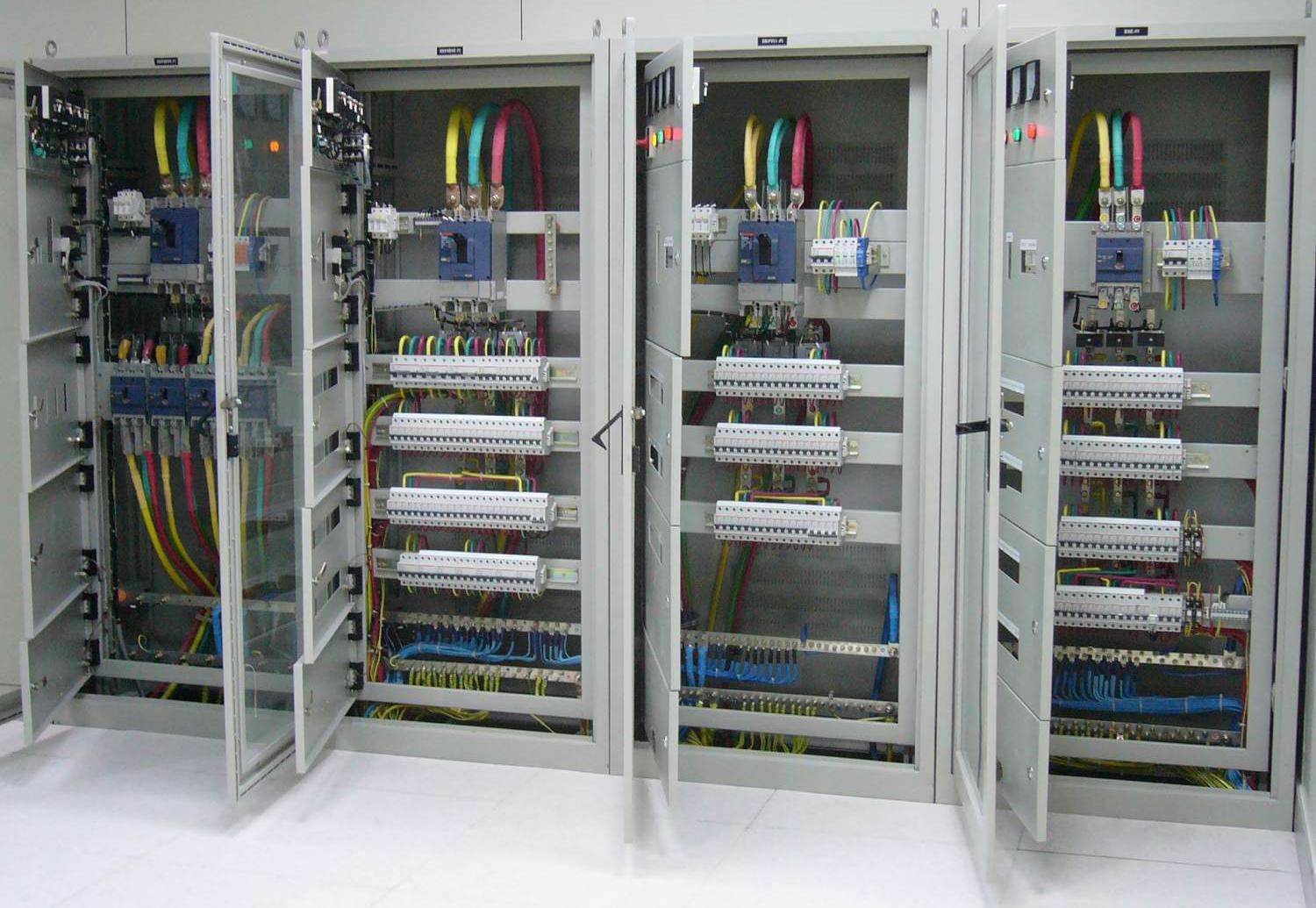 配電柜(箱)分動力配電柜(箱)和照明配電柜(箱)、計(jì)量柜(箱),是配電系統(tǒng)的末級設(shè)備。配電柜是電動機(jī)控制中心的統(tǒng)稱。配電柜使用在負(fù)荷比較分散、回路較少的場合;電動機(jī)控制中心用于負(fù)荷集中、回路較多的場合。它們把上一級配電設(shè)備某一電路的電能分配給就近的負(fù)荷。這級設(shè)備應(yīng)對負(fù)荷提供保護(hù)、監(jiān)視和控制。